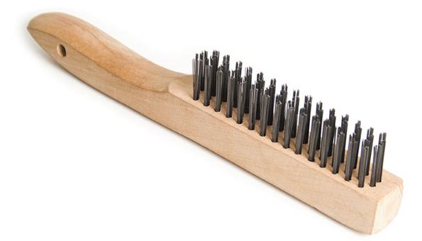 This heavy-duty brush is great for cleaning parts, especially aluminum, and for cleaning slag off of welds. 5 1/4" brush length and 10" overall length.