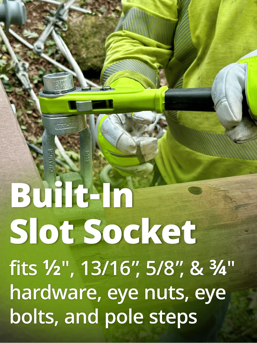 • Slot Socket installs and removes eye nuts, eye bolts, and pole steps