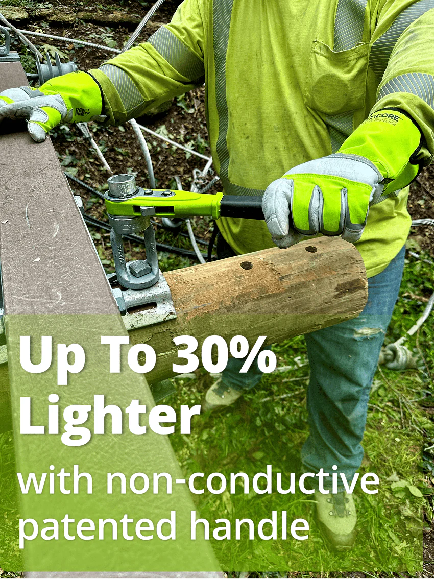 • Non-conductive Patented Handle – Up to 30% Lighter