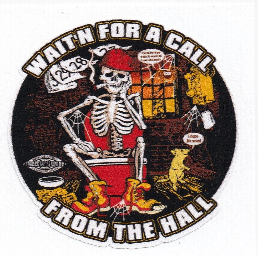 Premium 'Wait'n for a Call From the Hall' Hard Hat sticker. 2 1/4" Union made.